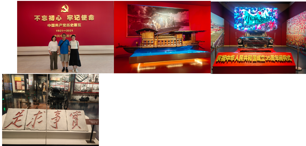 在中国共产党历史展览馆,教师们通过丰富的史料实物,系统回顾了党的百年奋斗历程。在“建立中国共产党 夺取新民主主义革命伟大胜利”展区,南湖红船等比模型、井冈山会师场景复原、红军长征路线图等展品,生动再现了革命岁月的艰辛历程。在“开国大典”沉浸式展厅,通过4D技术重温了1949年的历史性时刻;在“改革开放”展区,小岗村“大包干”契约等展品引发了热烈讨论;在“新时代”展区,天问一号模型、冬奥会火炬等展品,让大家深切感受到中华民族伟大复兴的铿锵步伐。