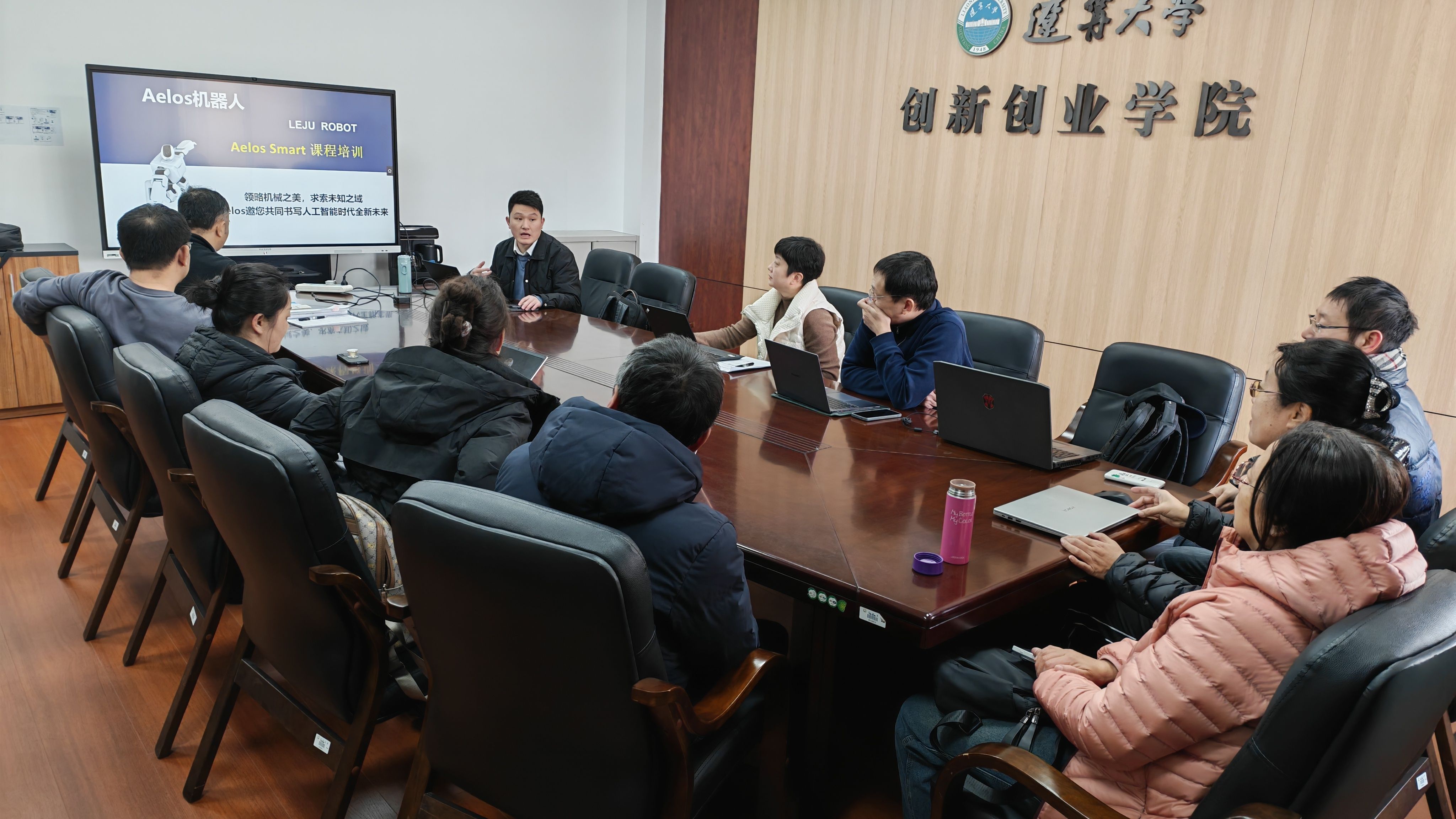 在乐聚机器人操作培训中,学院邀请乐聚智能(深圳)股份有限公司辽宁区经理刘士杰开展“人工智能大赛——Aelos机器人挑战赛(树莓派版本)培训演示”专题培训。培训涵盖基础、比赛、实际操作三大模块,实际操作含软件操作和地图设置。刘士杰经理结合赛事要求,通过演示、讲解帮助老师们掌握操作技巧。之后,教师前往创客空间实操演练,提升实操能力,为指导学生参赛奠基。